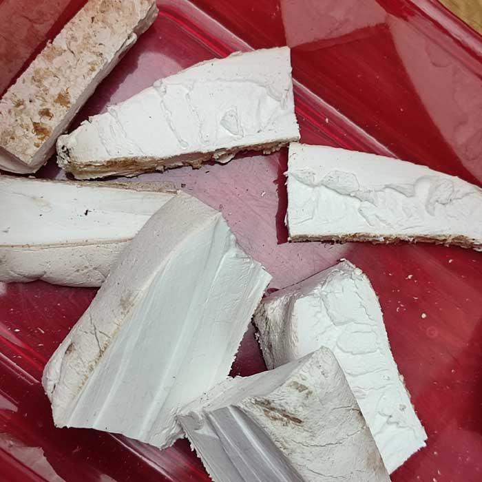 • Den weißen korkigen Rest in Streifen oder Stücke schneiden und trocken lagern