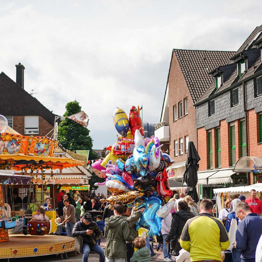 - Kirmes: Fahrgeschäfte, Spiele und Leckereien auf dem Volksfestplatz an der Gesamtschule.